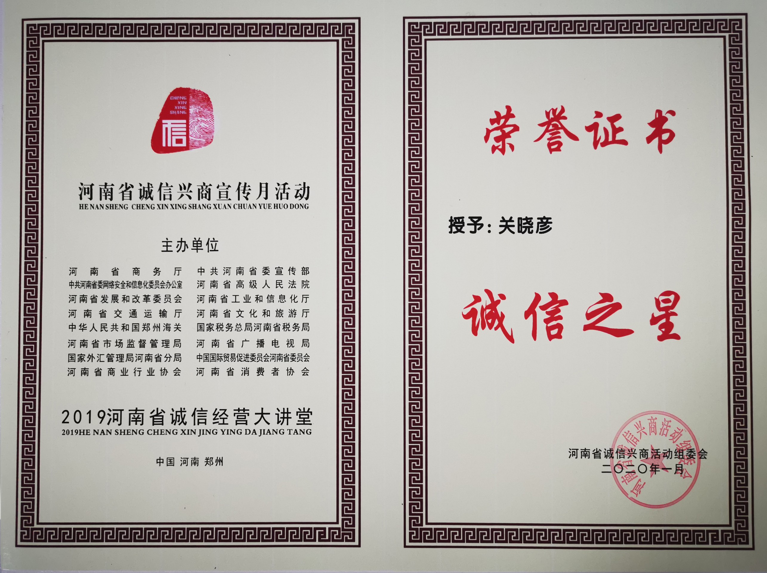 駐馬店市優(yōu)秀企業(yè)家榮譽(yù)稱號